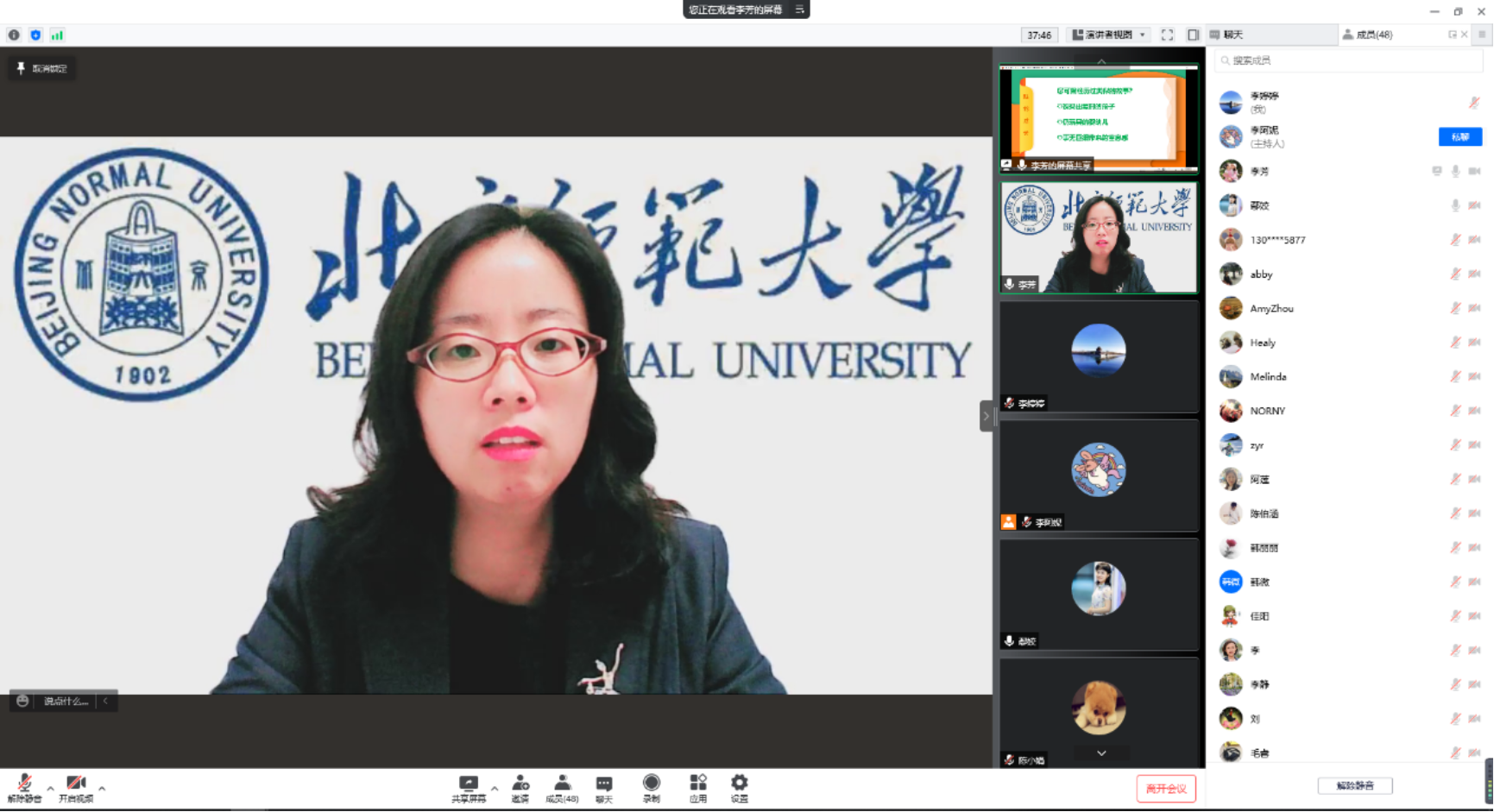 在交流与互动环节,多位老师就隔代教育、育儿焦虑、亲子沟通等家庭教育常见问题进行了咨询,李芳老师一一给出了建议和指导。互动结束,李芳老师深情地表示自己在北师大度过了本、硕、博三个重要阶段,母校永远是自己在北京的另一个“家”,同时向欧洲杯 120周年校庆献上了自己真切的祝福。
