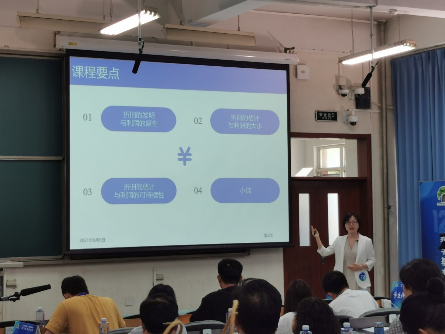 方芳老师参赛的课程是会计学,面向本科二年级学生,主题是折旧与利润。教学过程主要分为导入、展开和总结三个环节,深入浅出地讲解了折旧的发明及其与利润的关系。方芳老师采用图文并茂的方式生动地引入课堂,从第一次工业革命铁路公司面临的困境,顺利延伸到会计史的重要进步;用恒瑞医药的具体案例,分析了不同折旧方法对利润的大小以及利润的可持续性的影响。授课过程中,方芳老师着装整洁得体,精神饱满,思维活跃,善于运用手势、表情与学生进行互动,有效地调动学生思维、学习积极性,充分展现出了青年教师特有的专业素养与个人魅力。