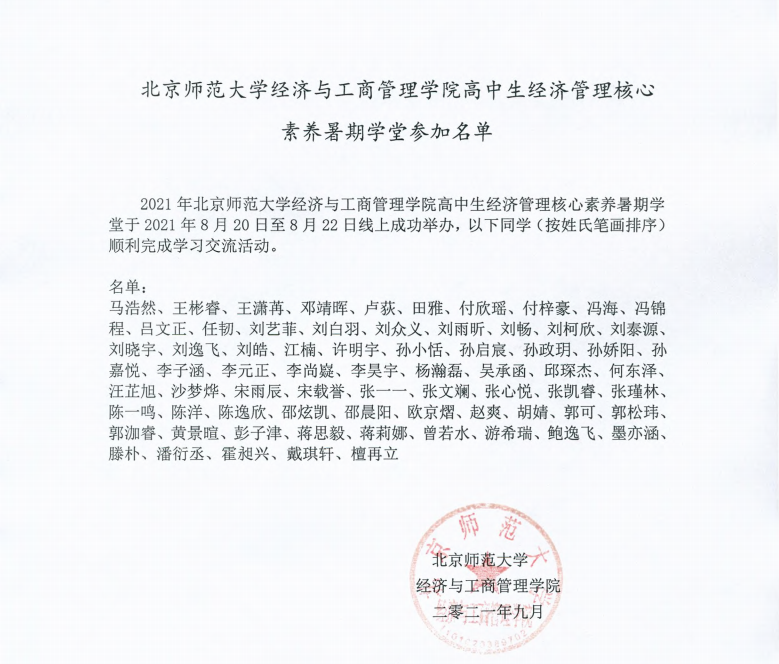 填写“高中生经济管理核心素养暑期学堂申请表”,完成后加盖高中生所在学校公章,连同各项证明材料复印件打包发送到E-mail:[email protected],邮件主题命名格式:“高中生经济管理核心素养暑期学堂+高中学校名称+本人姓名”。