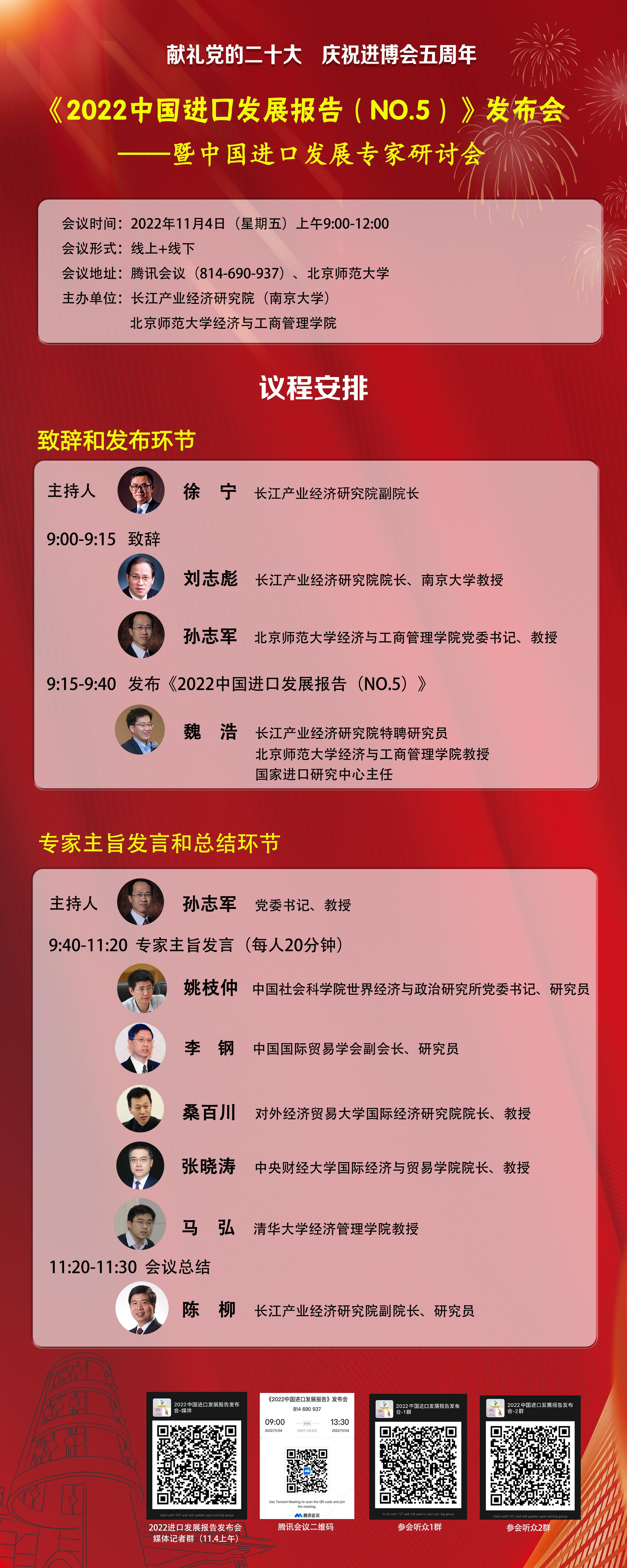 - 2022-11-02 《2022中国进口发展报告(No.5)》发布会 ——暨中国进口发展专家研讨会